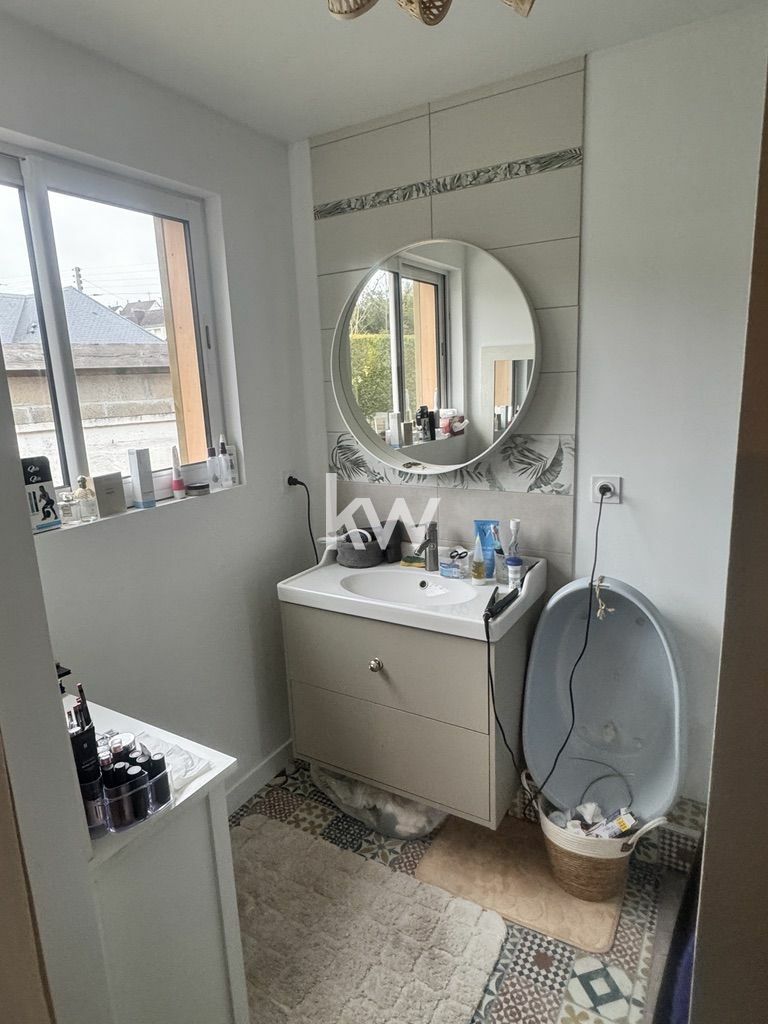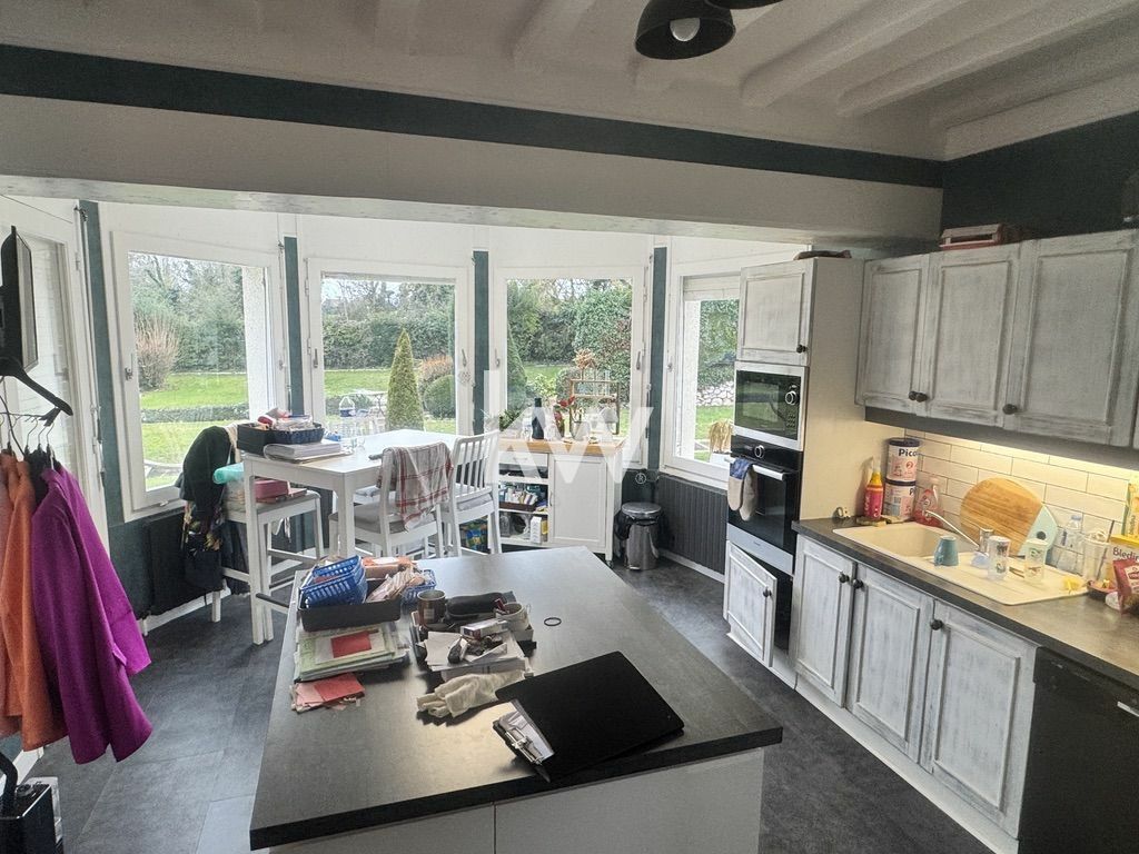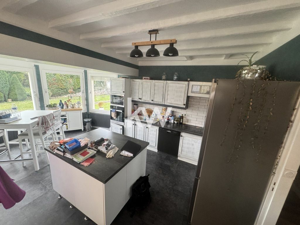 Grande entre desservant grande cuisine avec bow- window donnant sur le jardin, équipée et aménagée ouverte sur séjour/ salon. Couloir avec rangements desservant 4 chambres dont une suite parentale avec salle de bains ( douche), W.c, et une salle de bains ( douche).