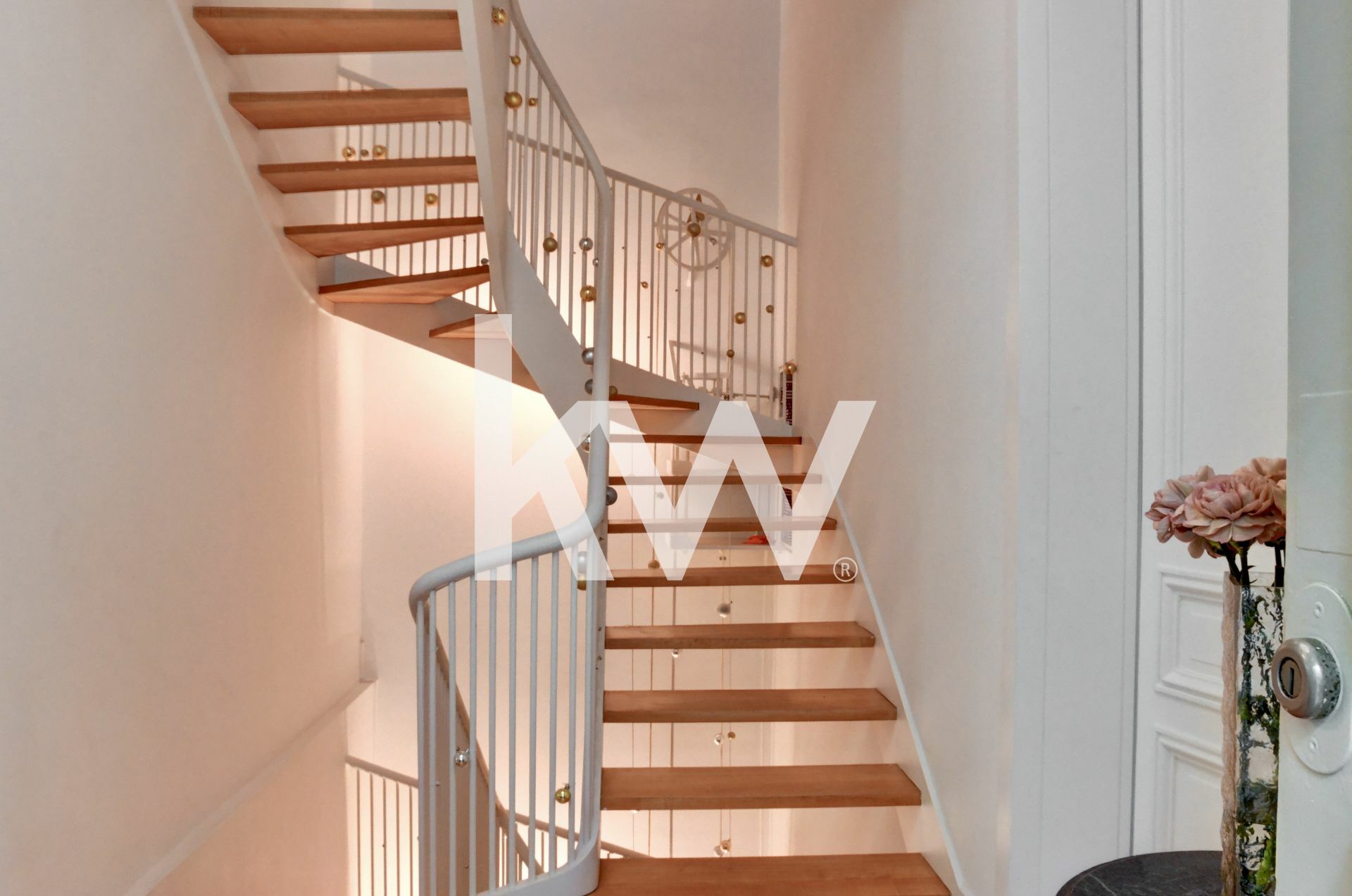 Cette élégante maison de maître, intégralement rénovée avec des matériaux et matériels de qualité, associe un style contemporain avec les codes de l'architecture éclectique haussmannienne néo-Louis XIII, typique des demeures de la grande bourgeoisie parisienne de cette époque.