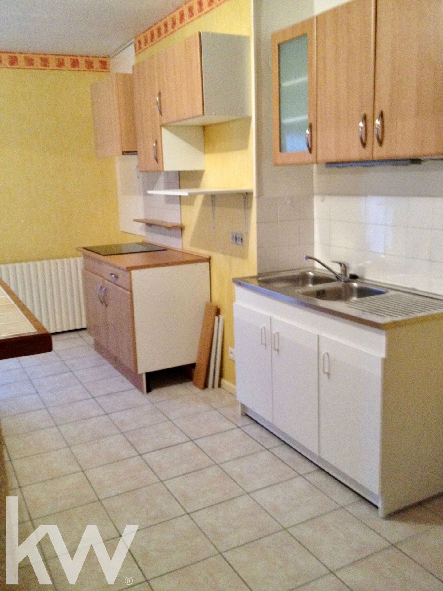 A louer: grand appartement de 3 pièce situé au premier étage d'n petit ensemble immobilier. Il est composé d'une vaste pièce à vivre avec cuisine ouverte aménagée et partiellement équipée, 2 chambres, une salle de bains et WC séparé. Un cellier et un garage complètent ce bien. Libre le 1/11/2025.