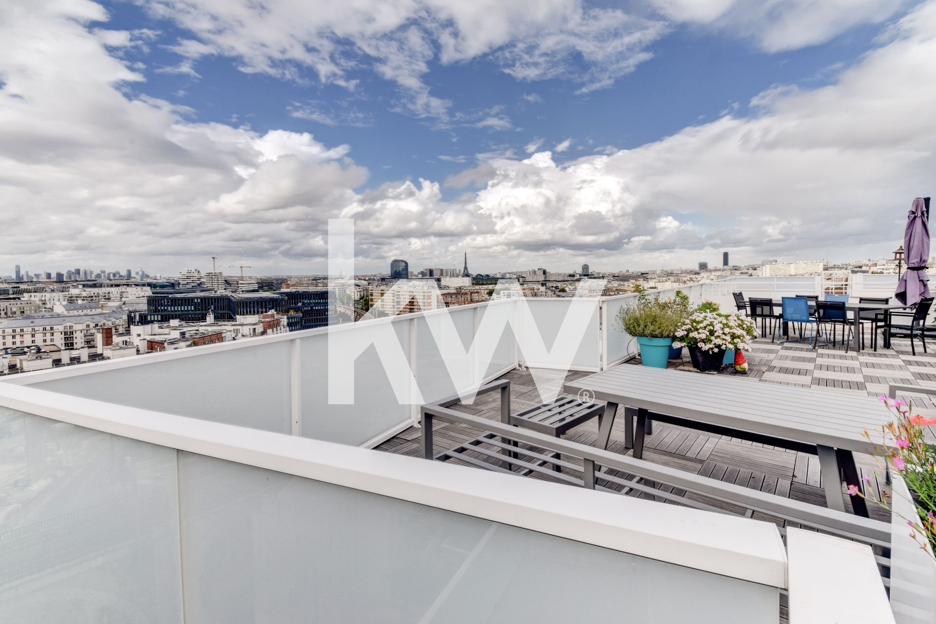 - Au dernier étage se trouve un double séjour cuisine d'environ 51m2 donnant sur deux terrasses dont une de 19m2 avec vue plein ciel à 180° sur tout l'Ouest parisien et la tour Eiffel.