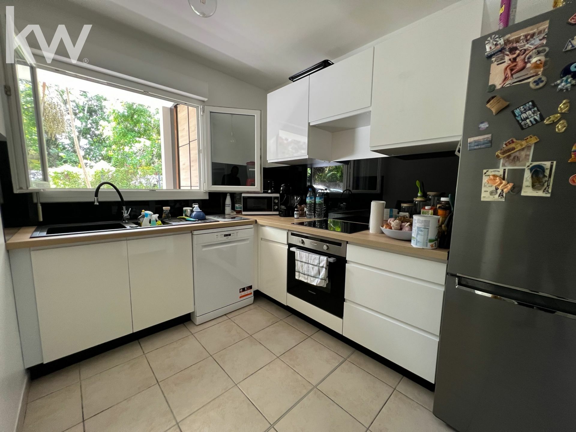 L'appartement offre un séjour, une cuisine américaine équipée avec lave-vaisselle, et deux chambres avec placard intégré.