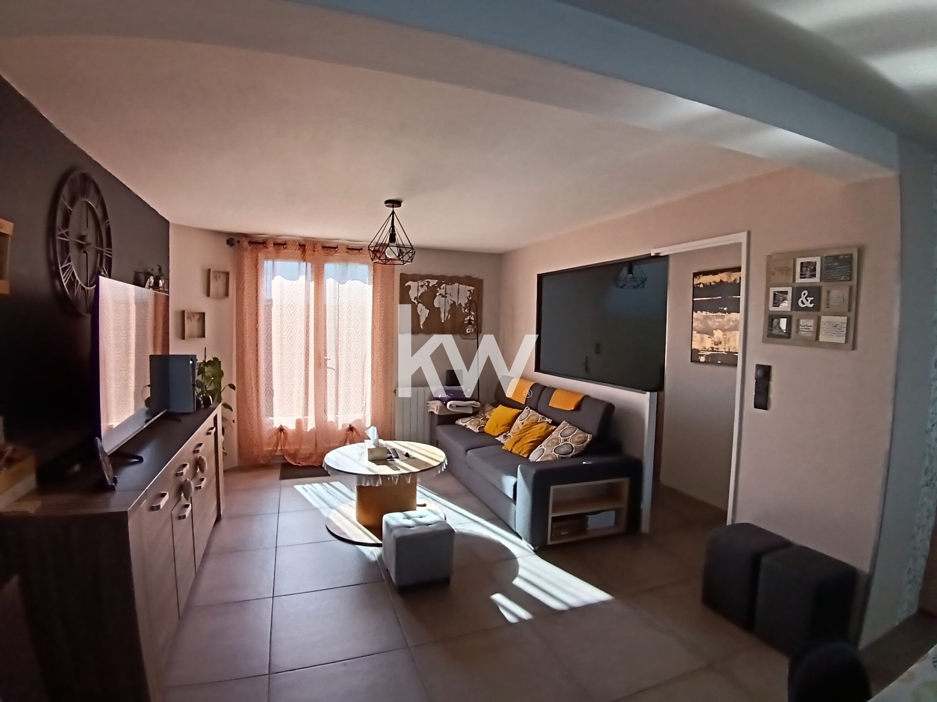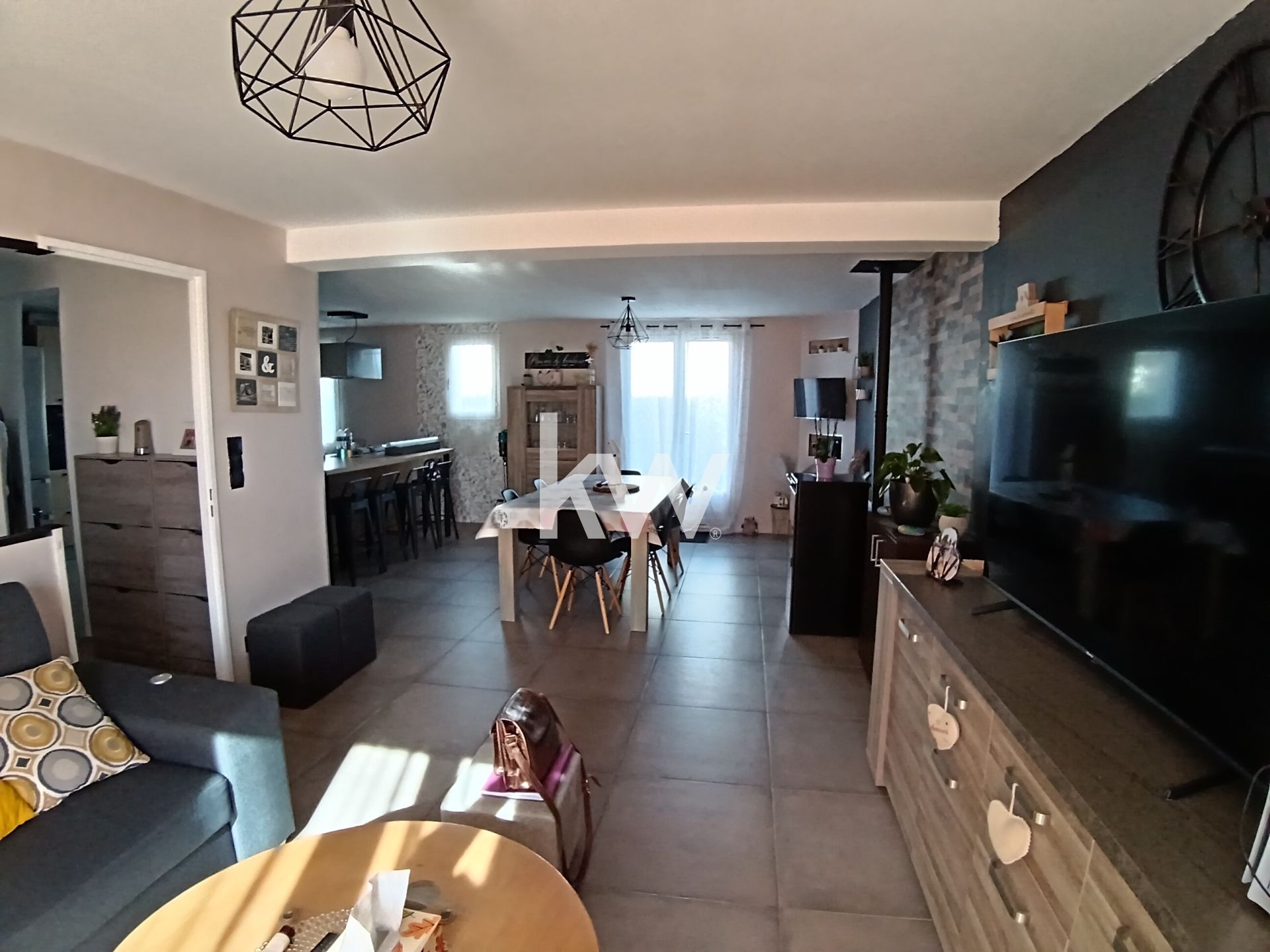 Une entrée, une belle pièce de vie avec cuisine ouverte, une salle d'eau et wc indépendant
